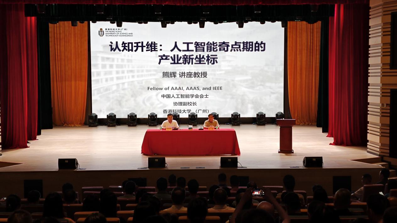 本次培训聚焦人工智能大模型应用,特别邀请香港科技大学(广州)教授熊辉作题为“认知升维:人工智能奇点期的产业新坐标”的专题授课。熊辉教授系统梳理了人工智能发展历程中的关键节点,深入浅出地解析了机器学习、深度学习、多模态模型等核心技术体系的底层逻辑,并结合城市发展实例,深入剖析了AI技术规模化应用对区域竞争力提升的驱动效应。他强调,在人机协同工作场景中,工作人员需着重培养精准提问能力、智能成果鉴赏能力及人机混合创新能力,以实现技术赋能的效能最大化。